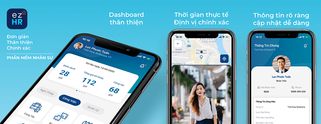 - Ghi nhận thời gian làm việc qua mobile, web, GPS, FaceID